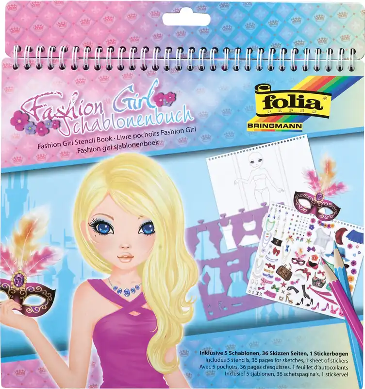 Schablonenbuch Fashion Girl 5 Schablonen, 1 Stickerbogen