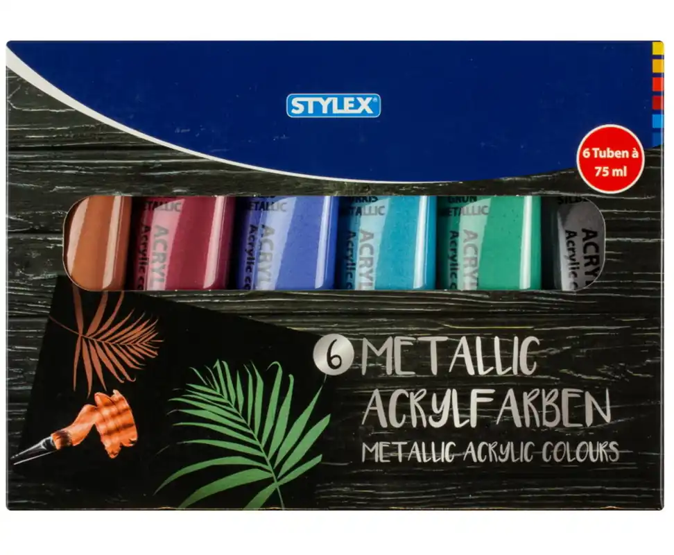 Start » Künstlerbedarf » Acrylfarben-Set Metallic, 6 x 75ml Tuben Super-Preis