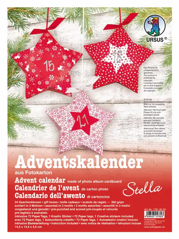 Adventskalender ”Stella” – bedruckt 300g/m² Versand Am Gleichen Tag