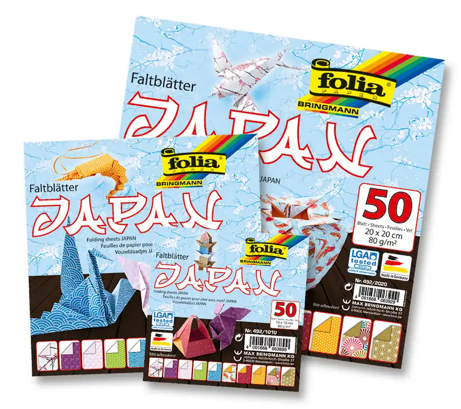 Faltblätter ”Japan” 80g/m², 15x15cm 50 Blatt in 10 Motiven sortiert