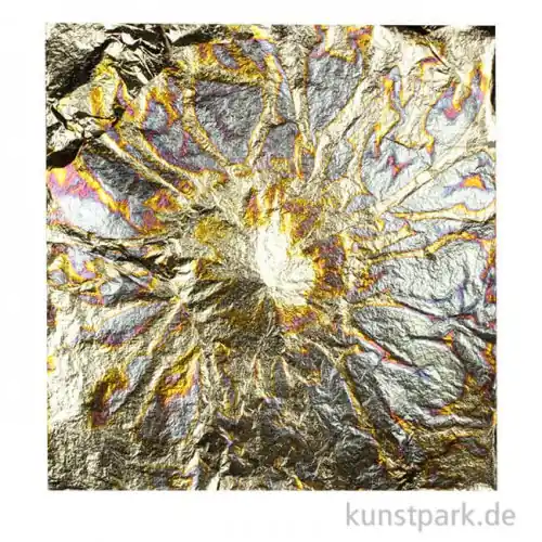 Metallfolie in Oxydmetall-Blau für die Verzierung und Oberflächenveredlung. Die feinen Blättchen haben die Maße 140 x 140 mm und können vielseitig eingesetzt werden.