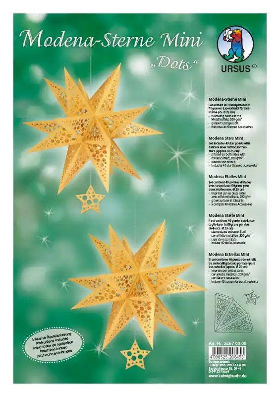 Modena-Stern Mini ”Dots” gold 10 Blatt für 2 Sterne