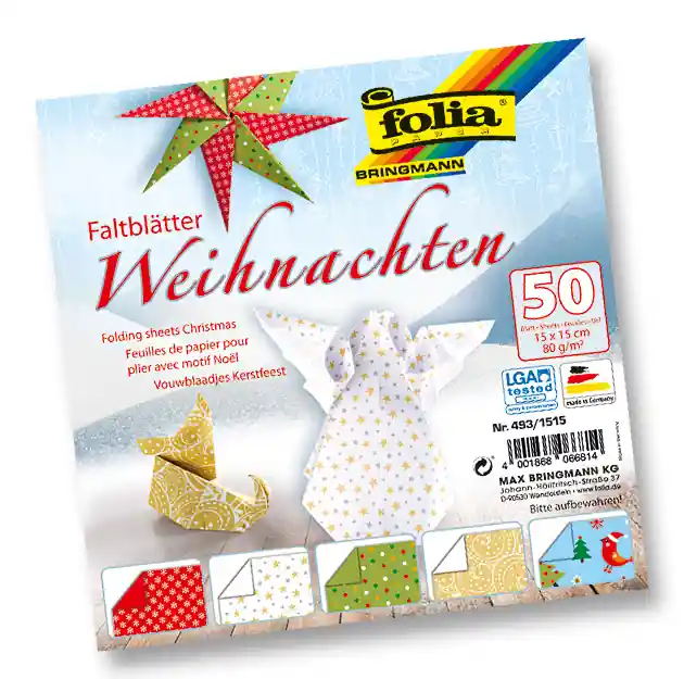 Faltblätter ”Weihnachten” 15×15 cm 80 g/m², 50 Blatt in 5 Motiven