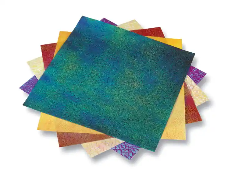 Irisierendes Papier, 2 Prägungen, 14x14cm, 50 Blatt, farbig sortiert