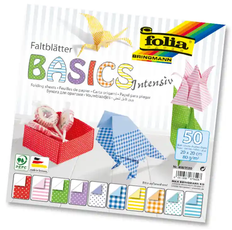 Faltblätter 80g/m², Basic Intensiv 20x20cm, 50 Blatt, 10 Motive sort.