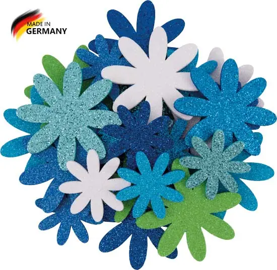 Start » Kreative Bastelwelt » Gleich Bestellen Glittersommerblumen Meerestöne, 28 St. sortiert