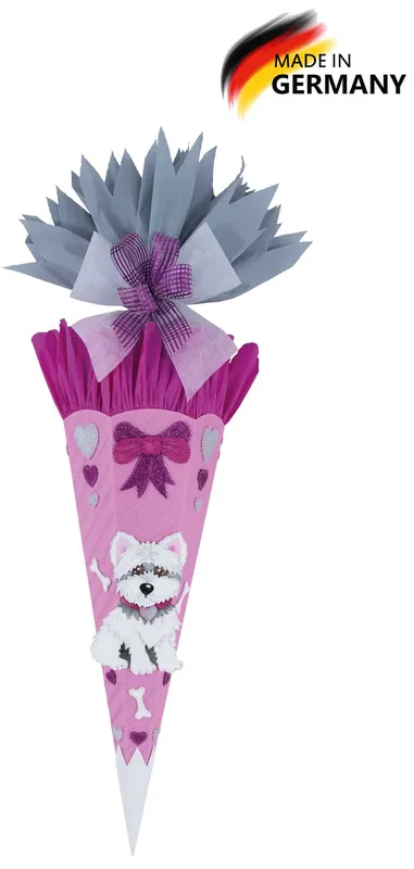 Schultüte Bastelset Hund – Schultüten Bastelset RubyAbmaße des Motivs:Hund: 14 x 21,5 cmEinfach – schnell – ohne Ausschneiden – kleben – fertig!Und so wird´s gemacht:Sie müssen nur noch das Krepppapier einkleben, den Schultütenrohling zusammenstecken und…