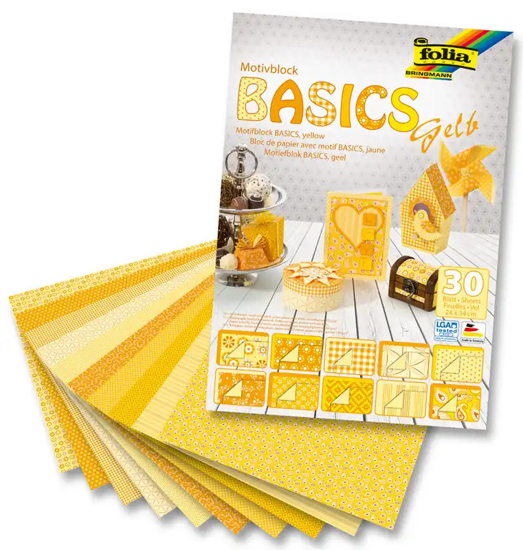 Motivblock Basics 24×34 cm gelb 270 g/m², 30 Blatt sortiert