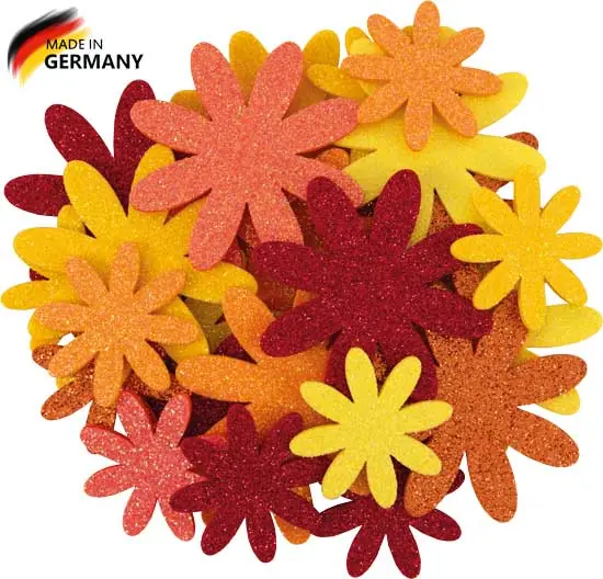 Start » Kreative Bastelwelt » Highlight Glittersommerblumen Sonnentöne, 28 St. sortiert