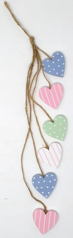 Holzherzkette Pastellfarben 4x6cm/45cm