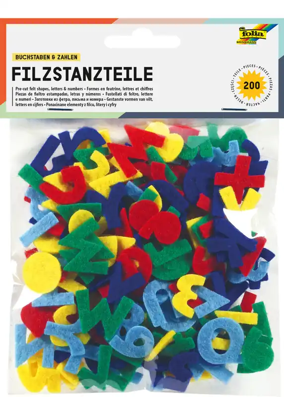 Filzstanzteile Buchstaben u. Zahlen 200 Teile, ca.25mm