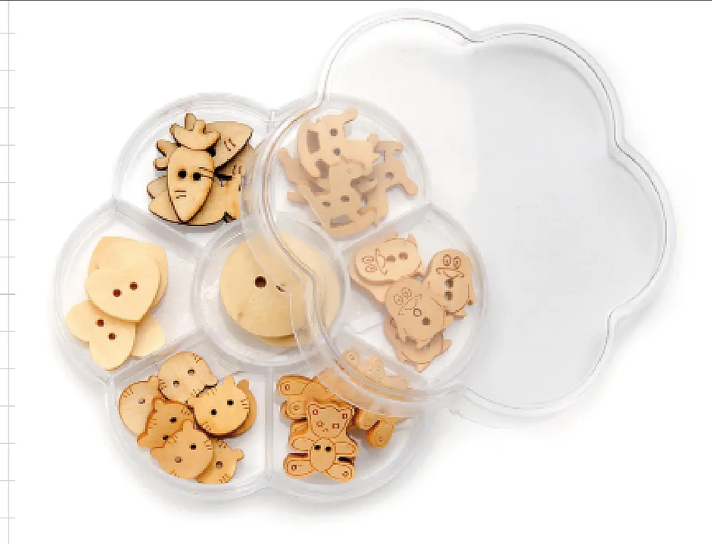Knöpfemix aus Holz, 40 Stück Figuren natur