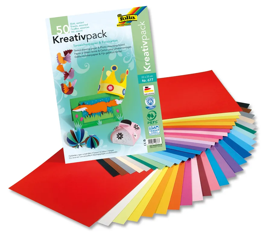 Kreativpack Tonpapier/Fotokarton 23x33cm, 50 Blatt, farbig sortiert