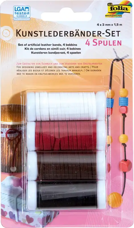 Kunstlederbänder-Set 4 Spulen, 4 x 3mm x 1,5m