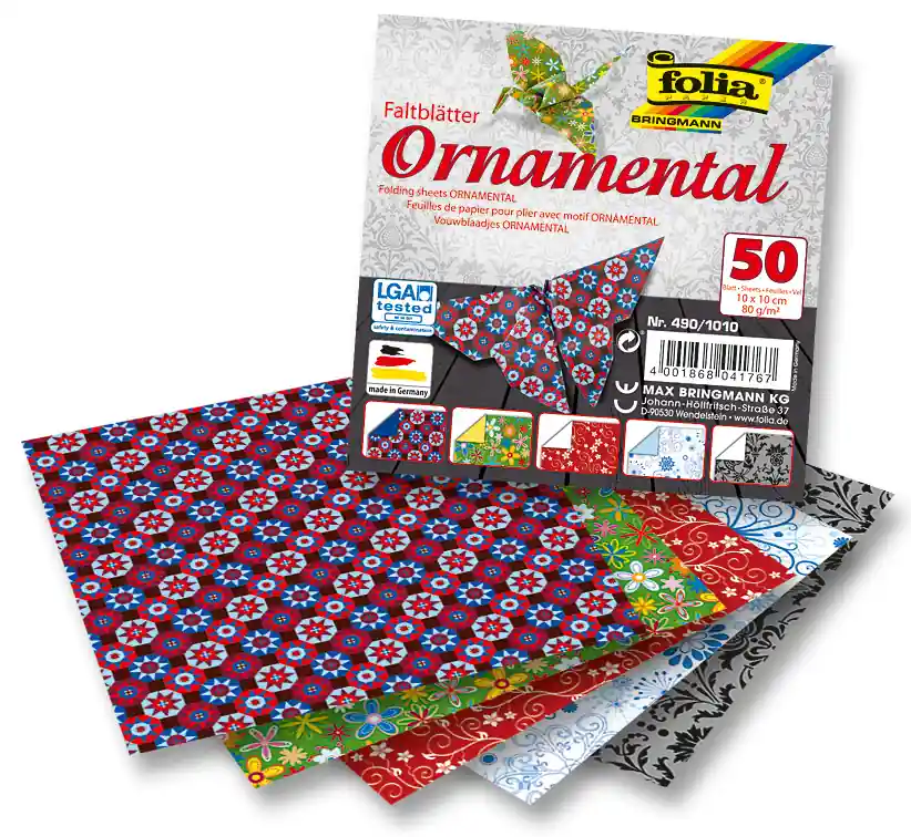 Faltblätter 80g/m², ORNAMENTAL 20x20cm, 50 Blatt, 5 Motive sortiert