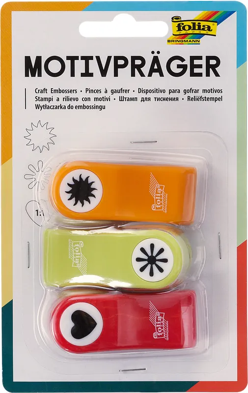 Motivpräger Set mit Sonne, Blume und Herz, ca. 15mm