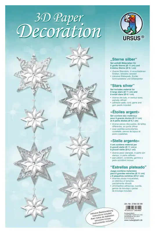 3D Deko Motive ”Sterne silber” für 8 große und 8 kleine Sterne