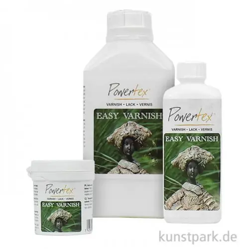 Easy Varnish ist der Powertex Schutzlack auf Wasserbasis für den Innen- und Aussenbereich. Auch als Bindemittel geeignet.