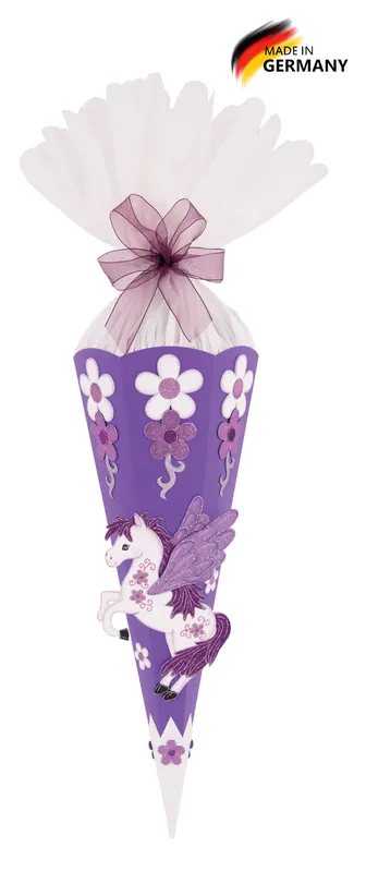 Schultüte Bastelset Pegasus – Schultüten Bastelset Tiara Abmaße des Motivs:Pegasus: 28,5 x 19 cmEinfach – schnell – ohne Ausschneiden – kleben – fertig!Und so wird´s gemacht:Sie müssen nur noch das Krepppapier einkleben, den Schultütenrohling zusammenste…