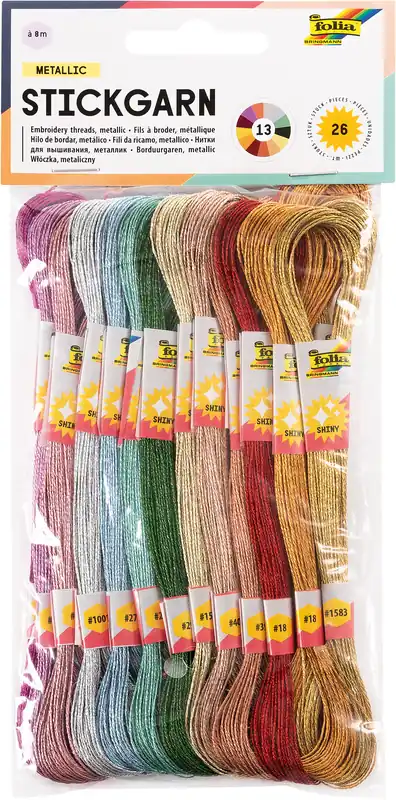 Stickgarn metallic 26 Stück á 8m 13 Farben sortiert