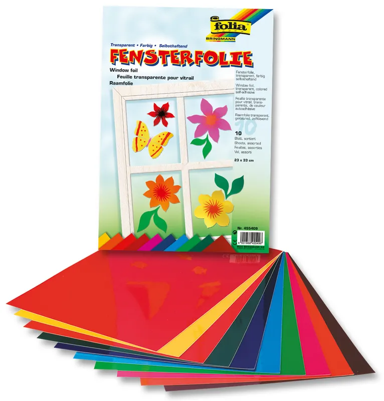 Transparente Fensterfolie 10 Blatt 23×33 cm, 10 farbig sortiert