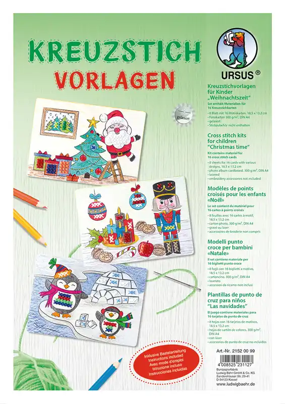 Kreuzstichvorlagen ”Weihnachten” 18,5×13,2cm 8 Blatt/16 Motive