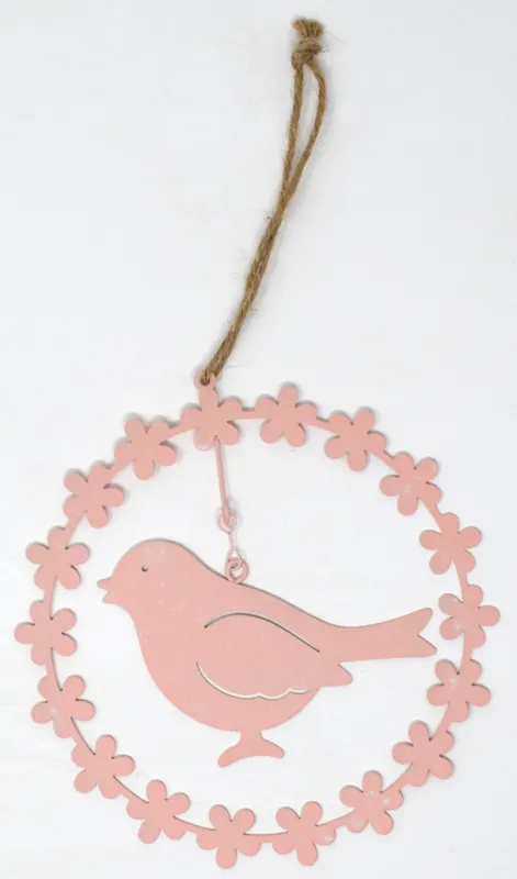Zertifiziert Blütenring mit Vogel rosa 13,5 cm